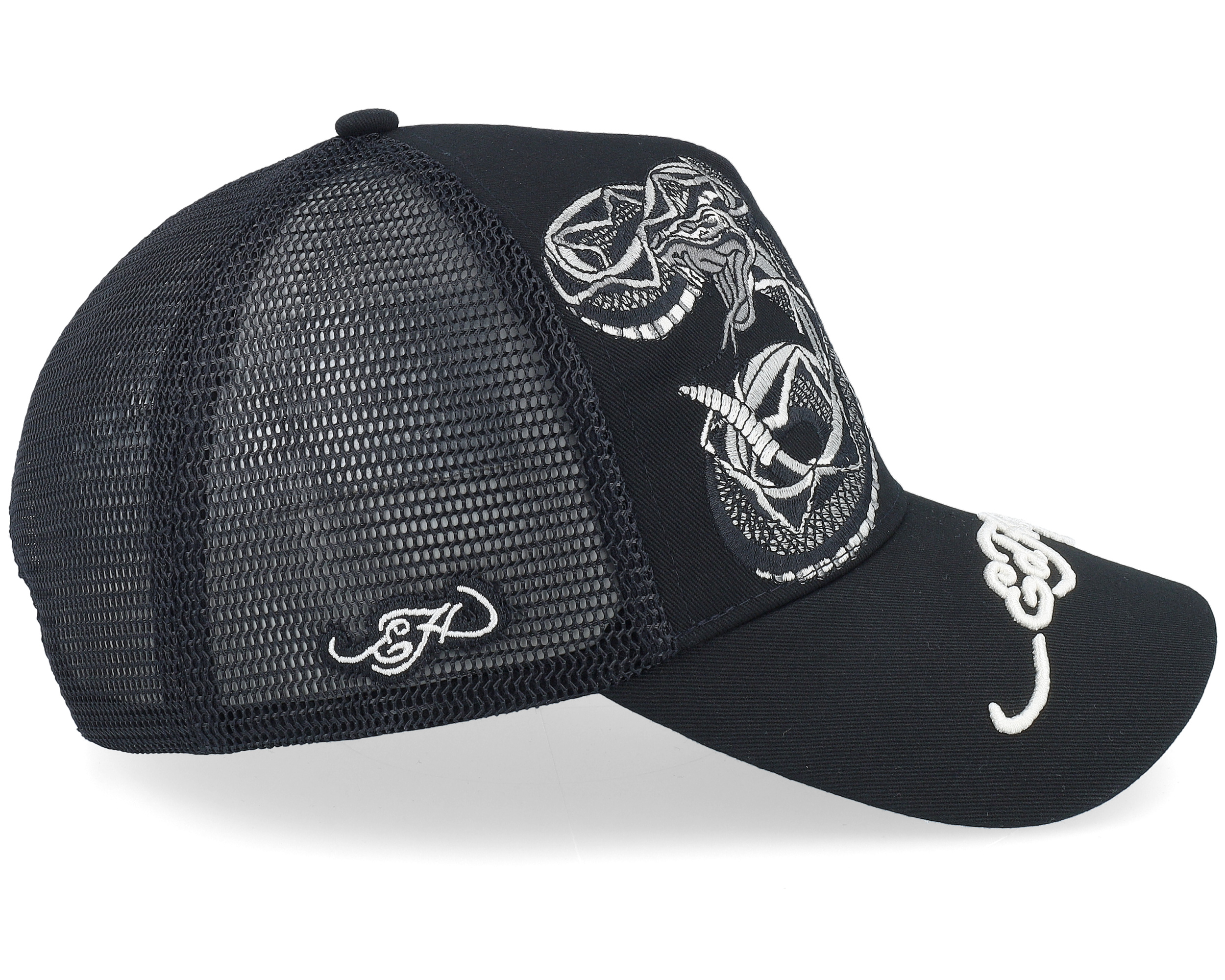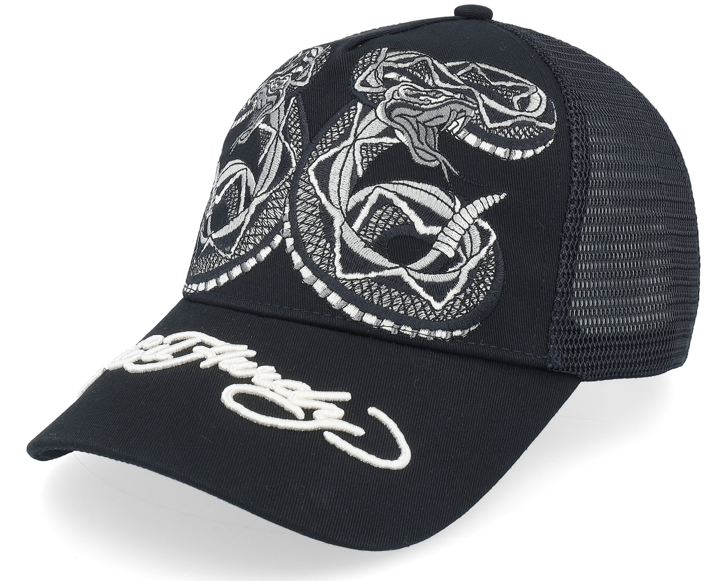 Ed Hardy Mono Snake Twill Front Mesh Black A-Frame Trucker
